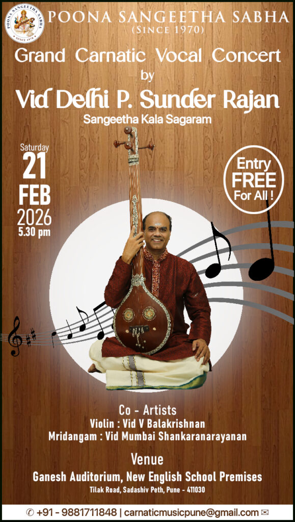 Well, yesterday’s #PoonaSangeethaSabhaconcert by @delhisunderrajan was not only customized, but high energy, meditative and everything that any rasika would want. @delhisunderrajan Sir, words will not do justice for the excellence . It was soul satisfying.